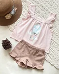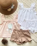 ۸–۶ سال👈 قد تاپ از سرشانه ۴۶ پهنا ۳۵ قد شلوارک ۲۴