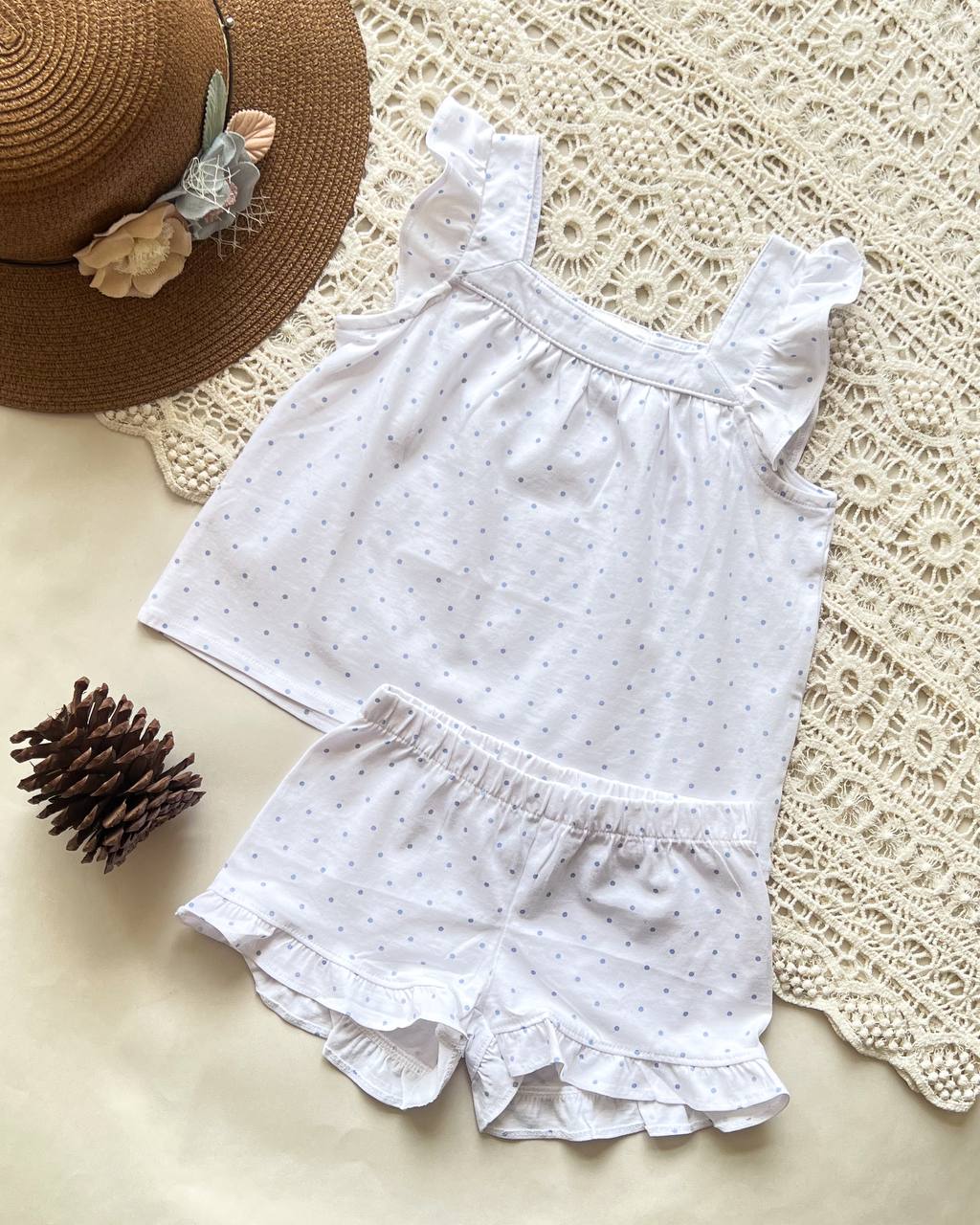 ۶–۴ سال👈 قد تاپ از سرشانه ۴۰ پهنا ۳۲ قد شلوارک ۲۳