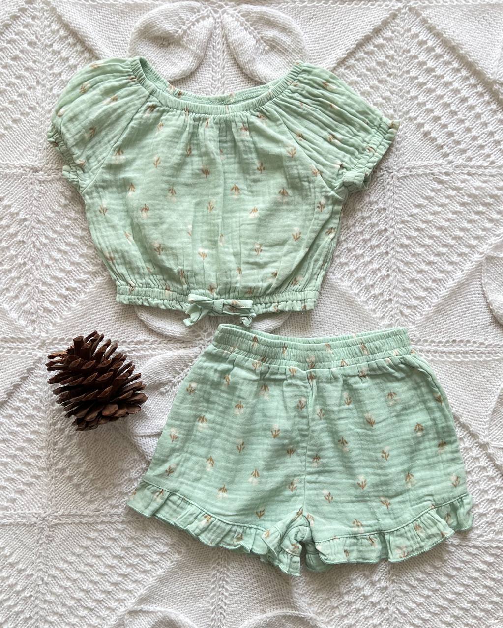 ۱۲ ماه 👈 قد بلوز از سرشانه ۲۵ پهنا ۲۷ قد شلوارک ۲۱