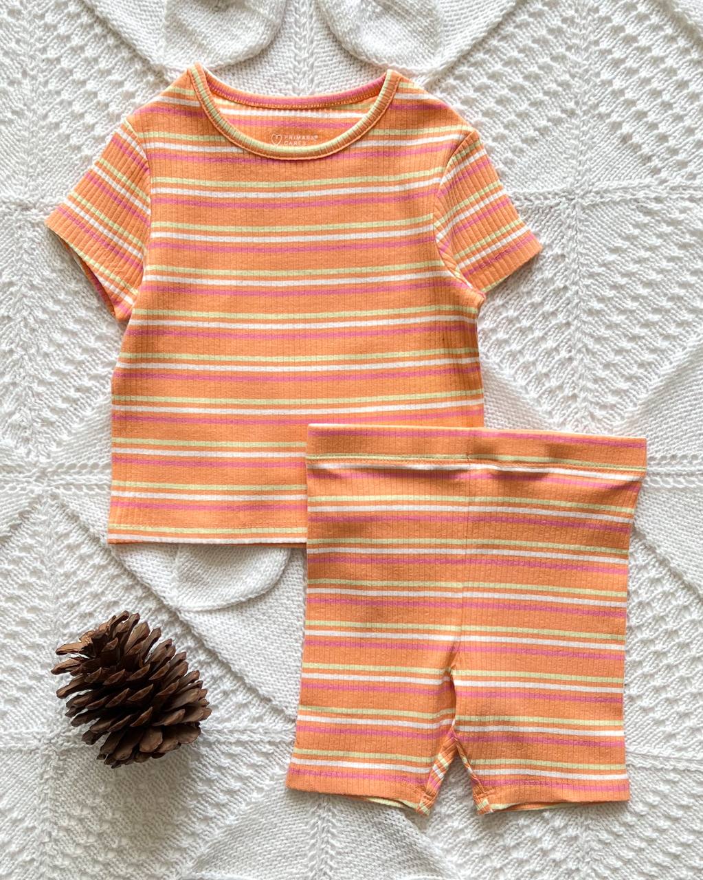 سایز ۲–۳👈 قد بلوز از سرشانه ۳۱ پهنا ۲۶ قد شلوارک ۲۶