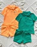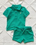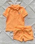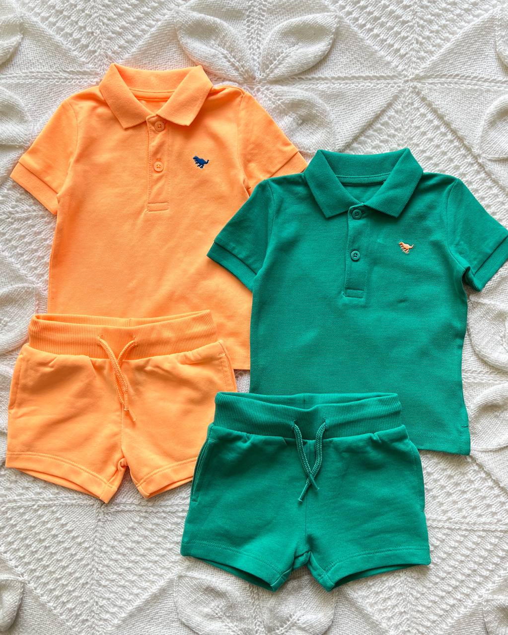 ۶–۳ ماه👈 قد بلوز از سرشانه ۳۲ پهنا ۲۶ قد شلوارک ۱۹ کمر ۲۳