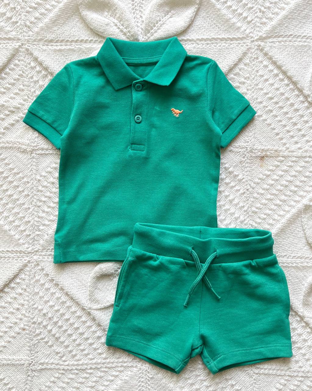 ۹–۶ ماه👈 قد بلوز از سرشانه ۳۴ پهنا ۲۷ قد شلوارک ۲۰ کمر ۲۴